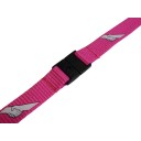 1/2″ W x 18″ L polyester lanyards with J-Hook attachment and plastic safety breakaway. Printed on one side.