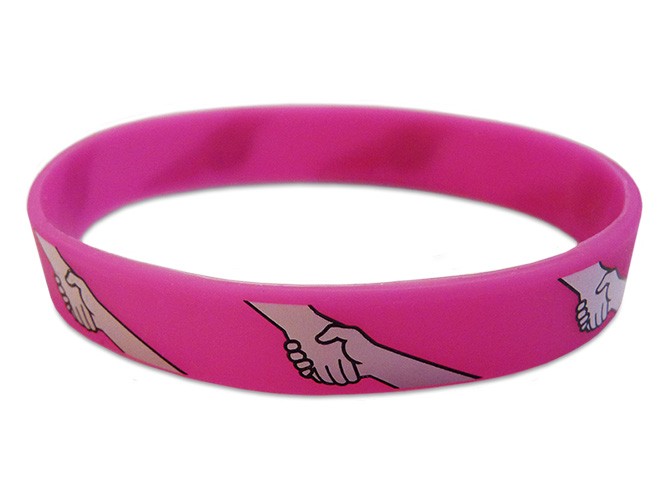 Made of 100% silicone, these high quality Anti-Bullying silicone bracelets are 8 1/4″ long (circumference) and 2.55″ in diameter. The silicone of the bracelets is 1/16″ thick.