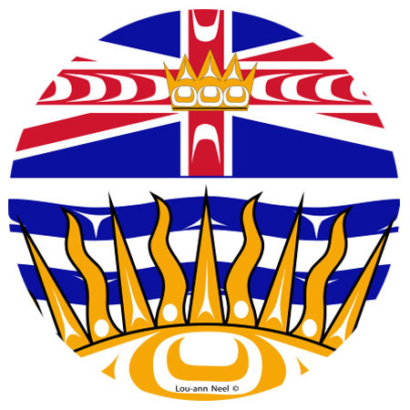 1.5″ digitally printed round BC Indigenous Flag buttons, laminated with safety pin backing.