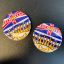 1.5″ digitally printed round BC Indigenous Flag buttons, laminated with safety pin backing.