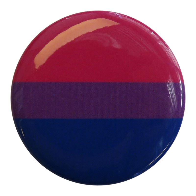 1.5″ digitally printed round Bisexual buttons, laminated with safety pin backing.