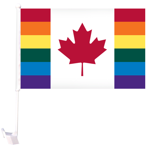 Show your support and inclusion of the LGBT (lesbian, gay, bisexual, and transgender) Community by flying a Canada Pride car flag.