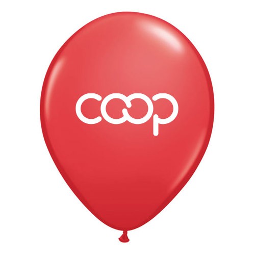 Co-op balloons, white logo on red background front and back.