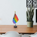 4″x6″ poly inclusive pride flag on black plastic stick.