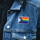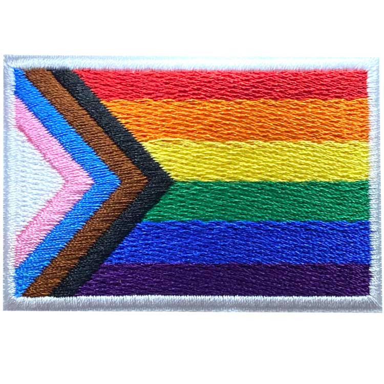 Our embroidered Inclusive (Progress) Pride Crest measures 1.5″ x 2.5″.