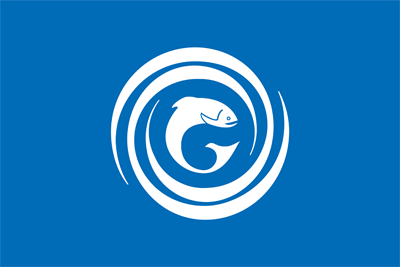 The image is that of a salmon in the shape of the letter ‘G’.