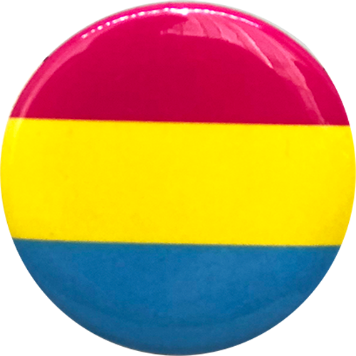 1.5″ digitally printed round “Pansexual” buttons, laminated with safety pin backing.
